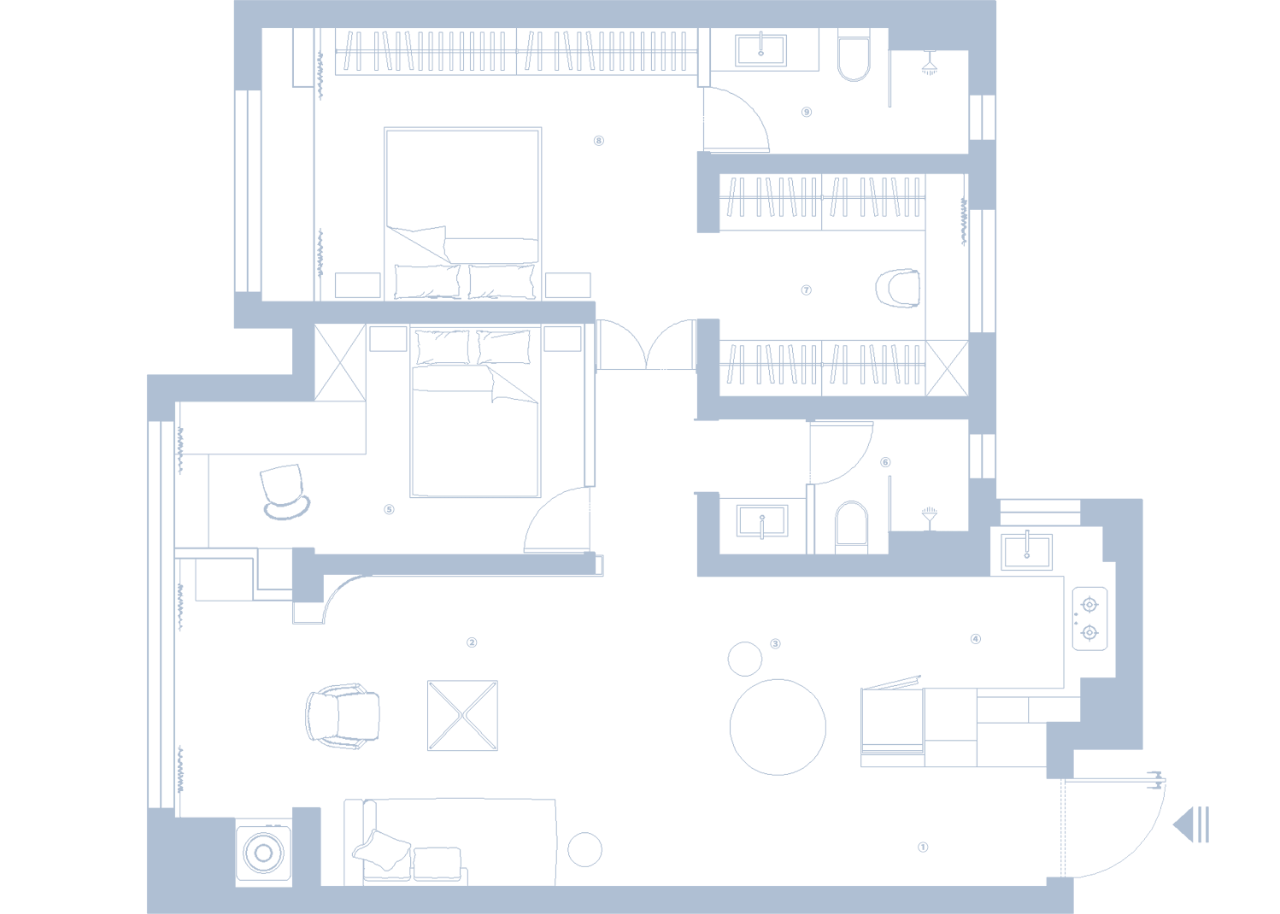 该品牌以其稳固的配色方案而闻名。这是很重的青色,金色和粉红色,这与该地区墙壁提供的干净的白色背景形成了很好的对比,这些墙被故意保持干净和最小的外观,以便让其他地方的形状和颜色占据舞台的中心位置。