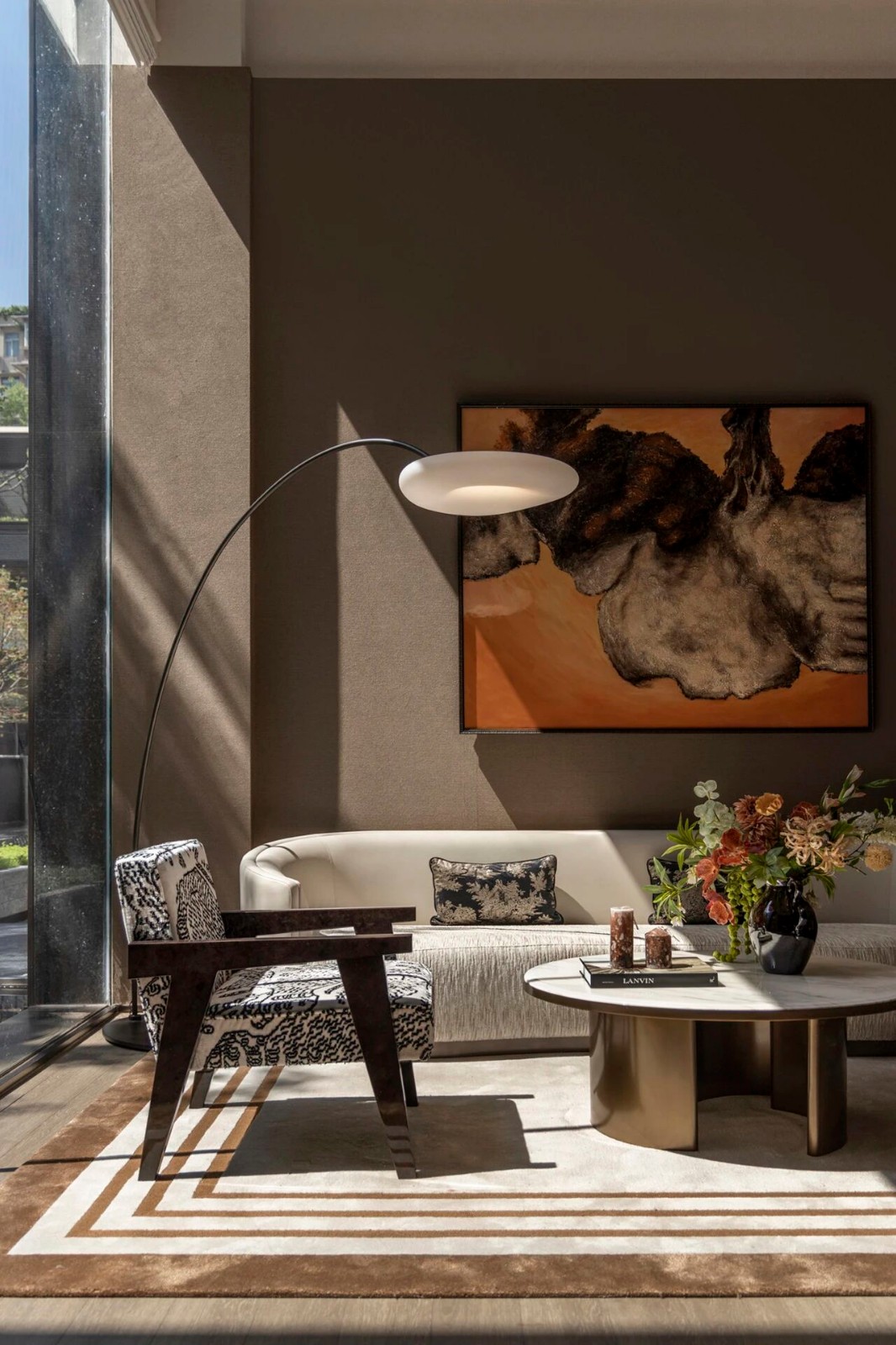 东方审美哲学与当代艺术观念的相逢,碰撞出时光悠然调和摩登气质的温润、澄静。 不拘泥于中式风格的固有形式,传承经典文化的同时吸纳当代思维;基于美学框架的建构之上,围合出纯粹、细腻的氛围印象。