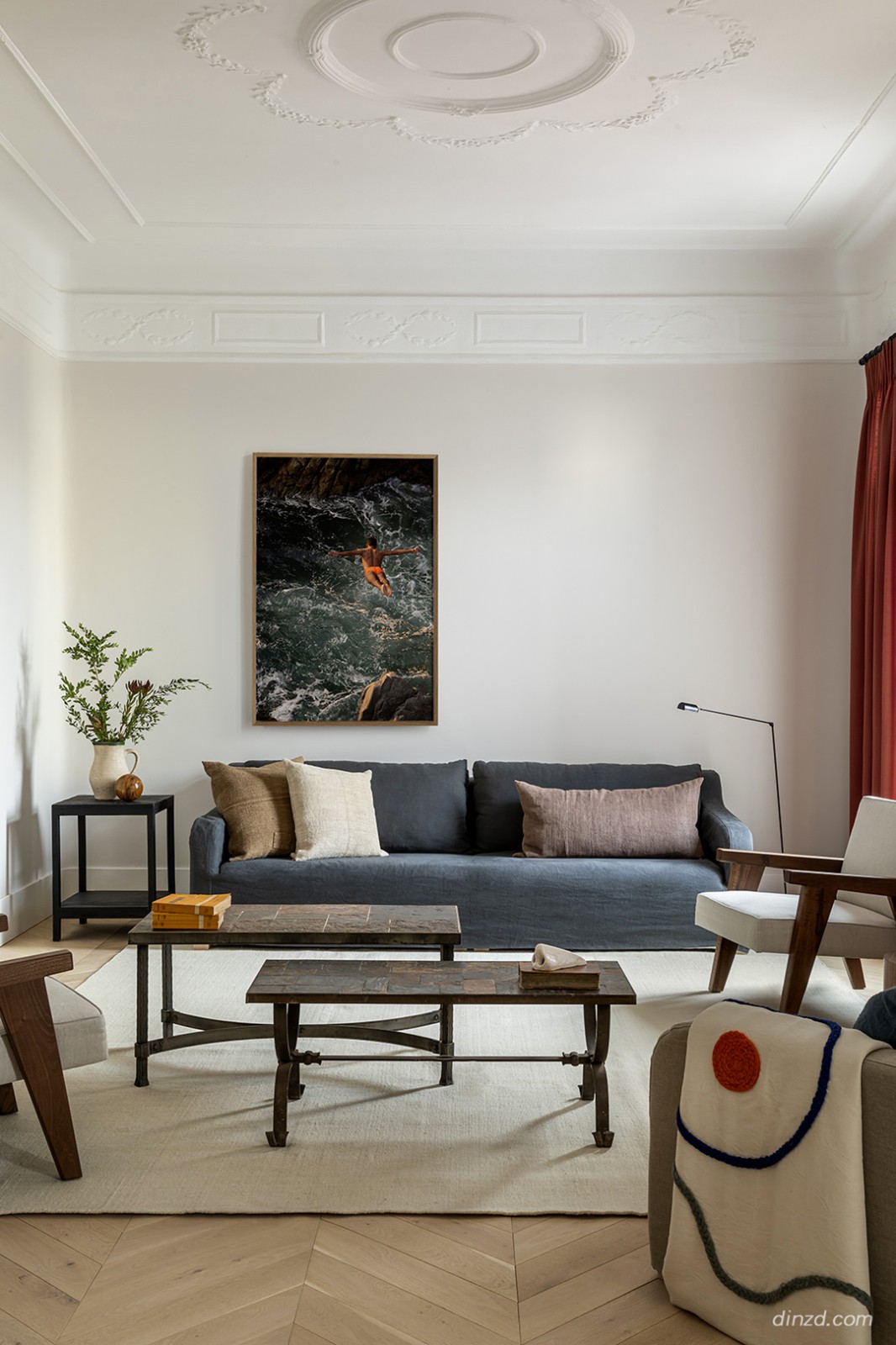 由于在装饰和家具中使用了不寻常的几何形状以及大胆的版画组合,这间法国公寓的内部非常有趣。设计师决定玩转圆形:拱门和走廊与客厅之间的隔断定下了设计基调,沙发、扶手椅、灯和装饰品被拉到他们面前。条纹天花板和墙壁、人字形镶木地板和方形瓷砖延续了几何主题。而且,这种不寻常的设计得到了大胆的配色方案的支持:柔和的色彩与明亮华丽的装饰、印花图案相结合,搭配得非常棒。你会喜欢这种大胆的室内设计吗?