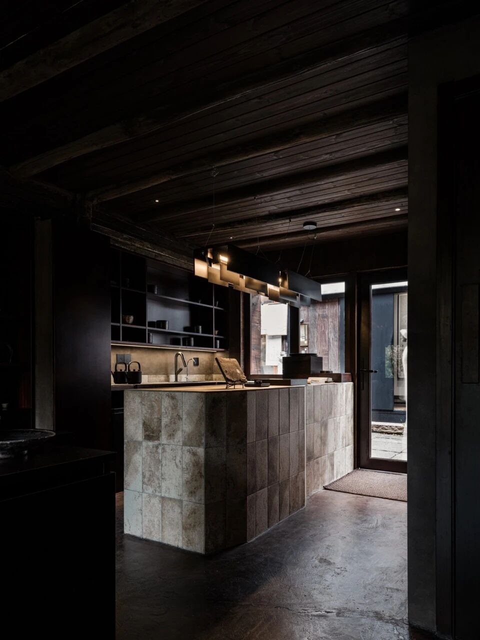 While the hotel’s original all-white colour scheme evoked soothing calmness, it lacked a strong connection with the land, something that Franceschini has rectified by introducing tones of black that reflect the volcanic rock that the property is built on. From the dark grey Marmorino stucco used for floors and walls, to the glazed basalt tiles in some of the bathrooms, to the black-stained timber furnishings and three-ton volcanic rock reception counter, the dark accents not only echo the surrounding basalt cliffs but also accentuate the hotel’s white hues, “as there is no light without darkness or white without black” in Franceschini’s words.