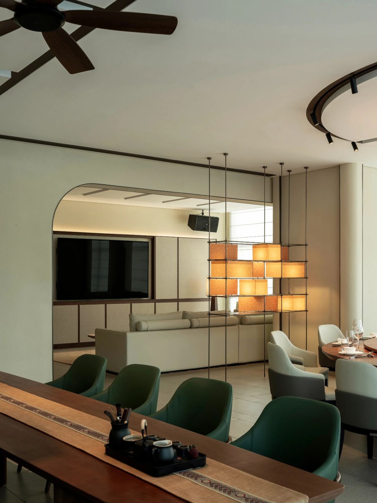整体设计以城市生活回归人本身为目标,在专注生活体验升级的同时,围绕古城西安的历史、自然、人文层面提取色彩与肌理,以现代手法进行演绎与重构,将生活的诗意珍藏于艺术之境,传递出生生不息的生活遐想。