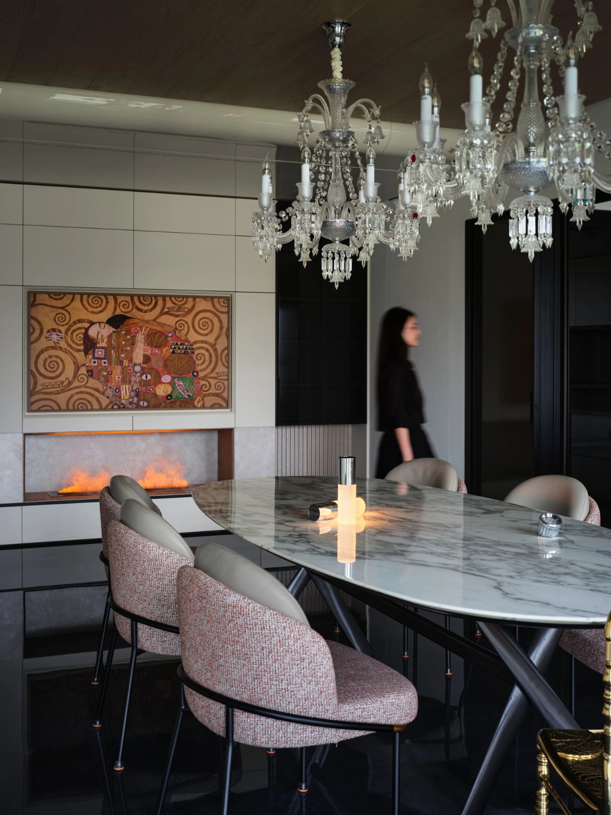 Interior designer Ekaterina Spinelli on the project: ‘My clients are a family of four: a Chinese businessman, his wife and their two lovely daughters. During our first meeting, they mentioned that they were currently living in bright interiors and were very tired of white walls. They wanted richer, deeper colours in their new 180 sqm flat. Above all, they wanted a hotel-like atmosphere. To me, ‘hotel-like’ means that the interiors are well organised, there is no visual noise, every seam and match is perfect and everything is in its place. Its a relaxing place to be.