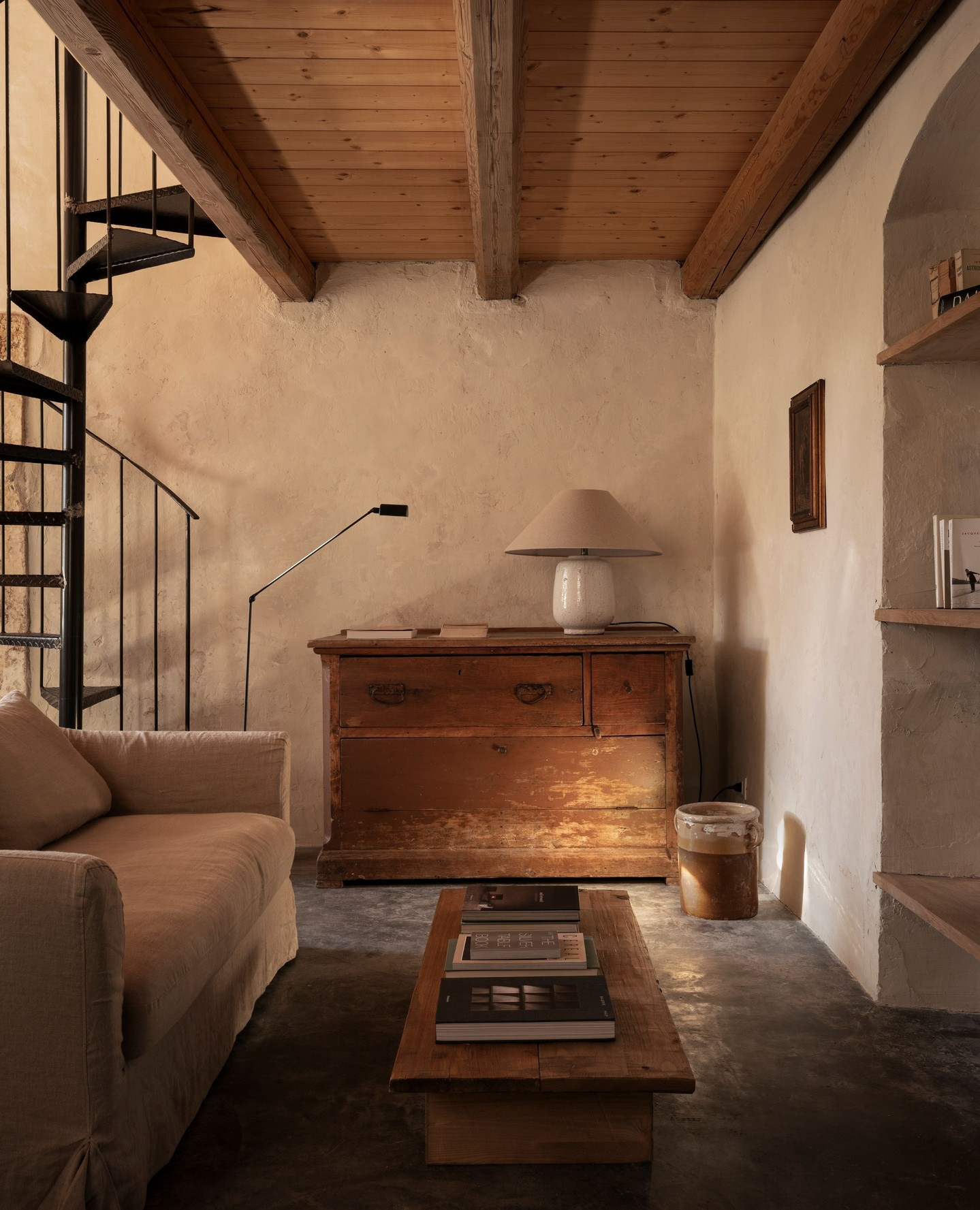 Caris design is inspired by traditional homes in the Cretan countryside - simple yet warm dwellings. She worked with Scope Architects and local artisans to strike a balance between sustainability and modern comfort, creating buildings that are both durable and elegant. The arches of the house are built in progressively hand-cut stone, paying homage to the classic craftsmanship of ancient Greek architecture while incorporating modern openness and soft lines.