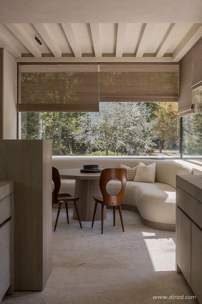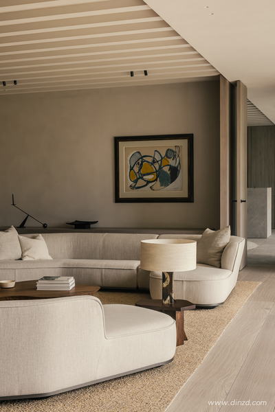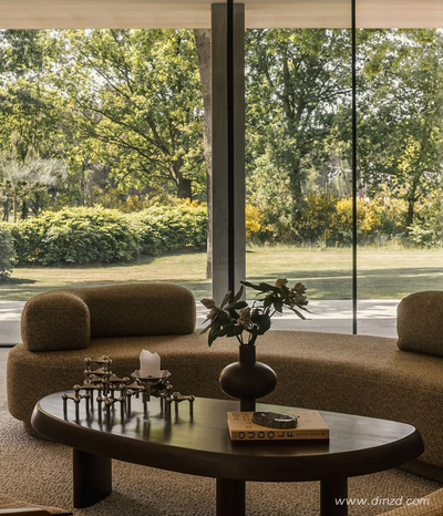 家的安全感本质上源于多重特质:优美的天然材料、声学效果、围合空间的墙体、观景窗边的舒适座位、以及无声表达欢迎的入口。花园与环境一样,与住宅持续对话:车道旁绿植成行,门前树木营造私密感,灌木随季节在室内投下变幻而有趣的阴影。项目终于何处?由客户决定。一件精心挑选的家具、配饰或艺术品,可以激活、柔化甚至提升建筑元素的表现力,因此它们也占有重要位置。最重要的是,不应有任何事物抑制对生活的热情。