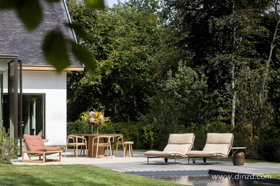 在花园里,建筑师巧妙地运用了稳重与内敛的风格,一些色彩跳跃的户外家具让人眼前一亮。