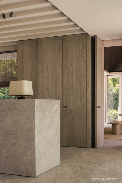 In the residence, wood naturally extends from the exterior cladding to interior kitchen countertops, floors, and dressing rooms, forming a continuous material narrative that the designers refer to as a warm trace. This design not only brings the natural texture of the exterior indoors but also bridges the conceptual boundaries between public and private, exterior and interior, through a unified material language, creating a seamless experience that is both rooted in the environment and fluid.