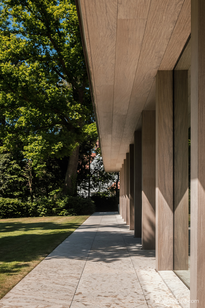 木材将外部的自然质感引入室内,营造出既根植于环境又流畅的体验。/ Wood blends outdoor nature indoors for a seamless feel. ©Thomas De Bruyne