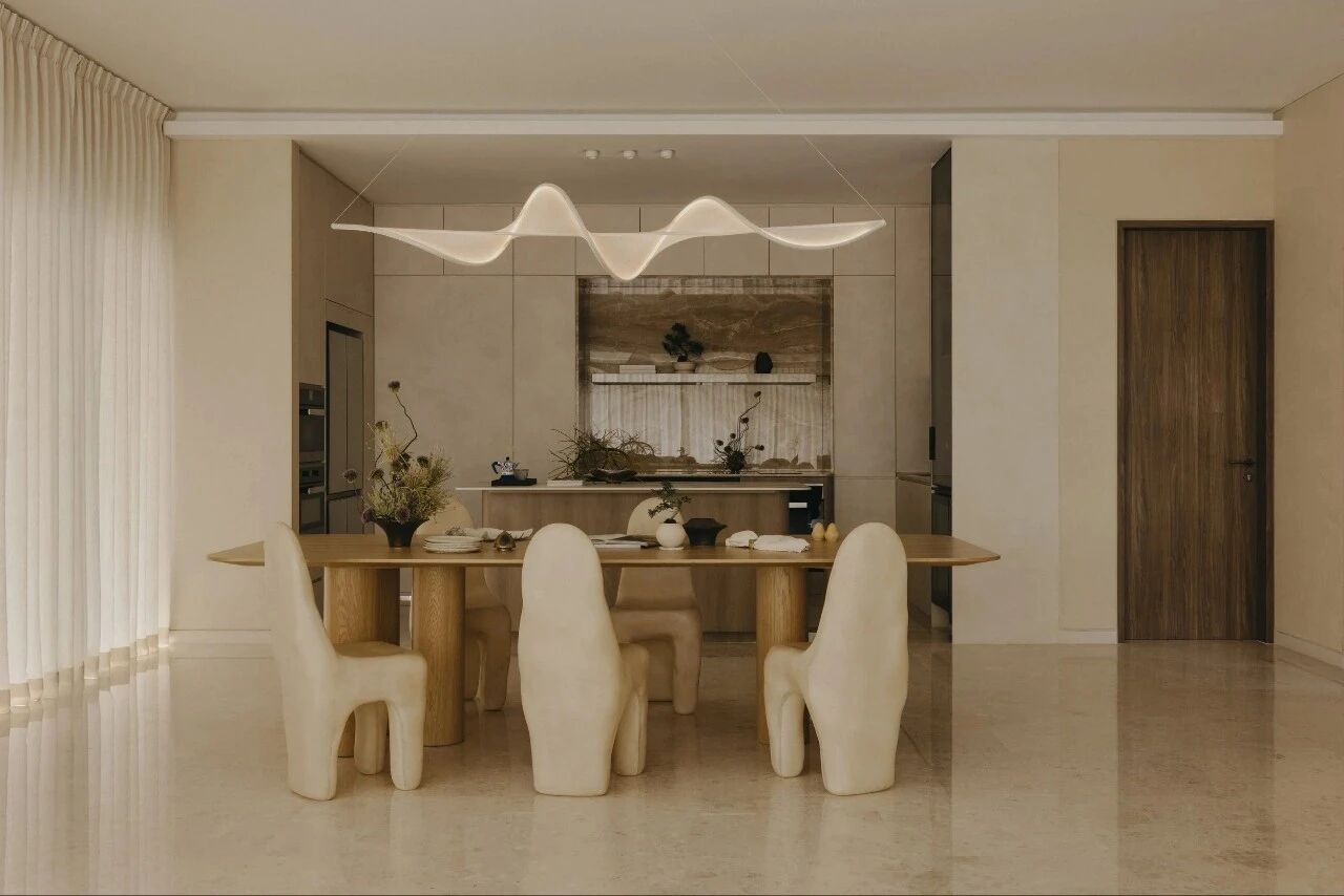 材质在其中起到决定性的作用。大理石的天然纹理为空间带来表现力,而光与肌理的交互则丰富了触感与视觉层次。正是这些细节,共同营造出一种飘渺却安定的气质,使住宅在优雅与庇护之间取得微妙的平衡。它不止是一所房子,更是一种有意识的生活姿态——一个诗意的避难所,让人在数字噪声之外,重新找回宁静与家庭的真意。