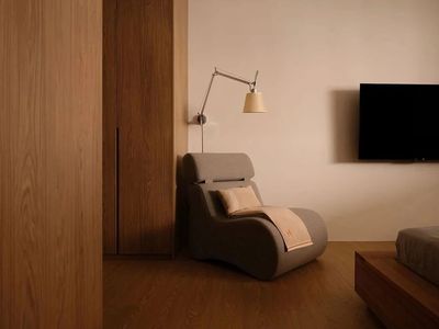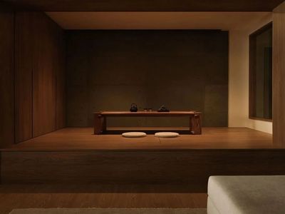 家具延续了极简而宁静的基调。低矮的茶几(Chabudai)与模块化沙发共同构成核心社交场域,而背后的灵活壁龛,则借鉴日本传统床の間(Tokonoma)的形式,可作为冥想角落,也能在需要时转化为客房。