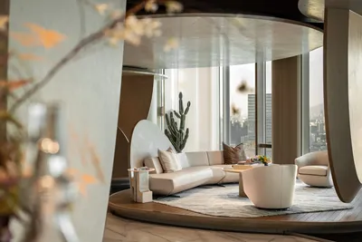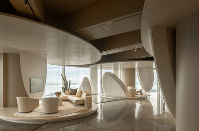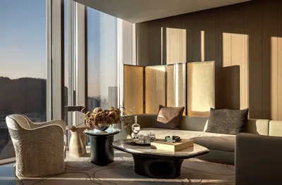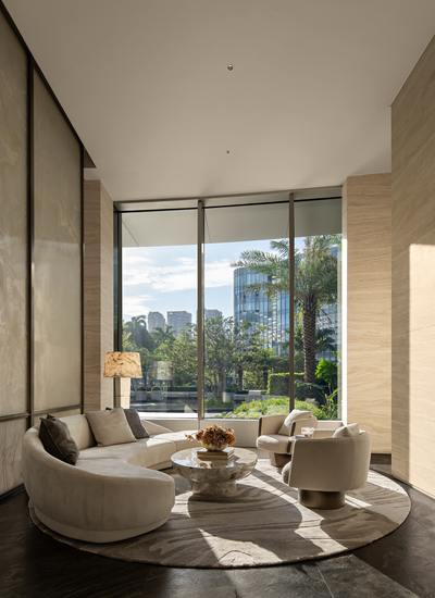 视线所及皆是波光、帆影与城市轮廓的融合边界。低饱和度的木饰面铺叙出温润基调,天然石材与定制艺术家具错落排布,于材质的静谧秩序中,悄然植入克制的奢。