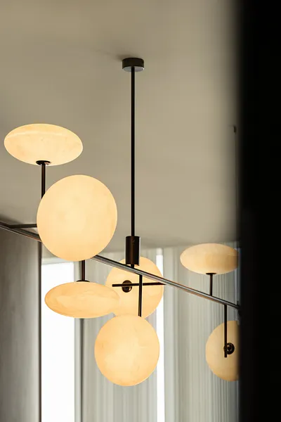 形似鹅卵石,与海为景的空间中,它们仿若来自岸边的遗物,亦或潮水的低语,与窗外的天海交界遥遥呼应,为空间注入一丝克制的浪漫与感官的纵深感。