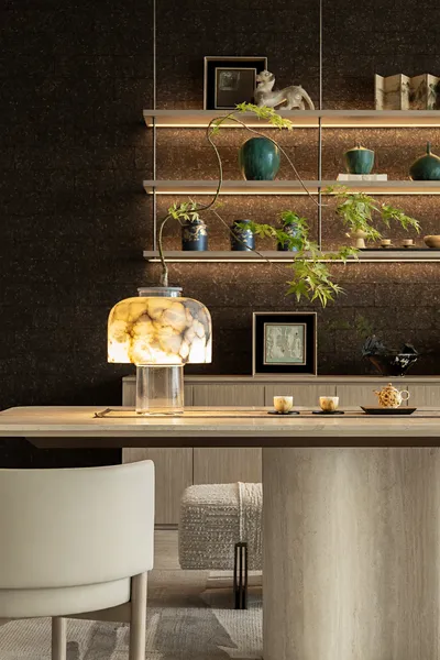 以微妙的光晕勾勒结构的轮廓、润色材质的肌理。灯光透过精工材质,折射出层次的温润,如同诗句中的余韵,不张扬却难以忽视。它让空间的秩序更具呼吸感,也让氛围在静雅与灵动之间找到恰到好处的平衡。