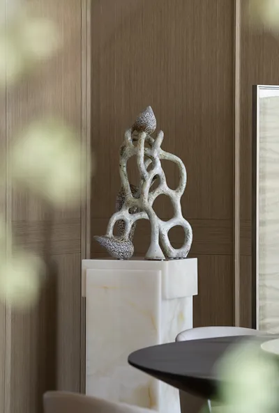 雕塑的存在,使文化氛围在静默中生长,于材质的肌理与线条的转折间,唤起观者内心的共鸣。以凝练的形态与深邃的意涵,赋予空间以东方的风骨与气韵。它们不只是装点,而是空间叙事的核心语汇,使日常的行走与停驻,皆融入艺术的气场与文化的余韵。