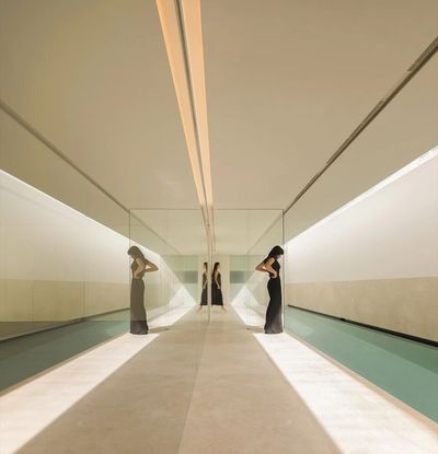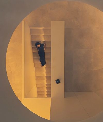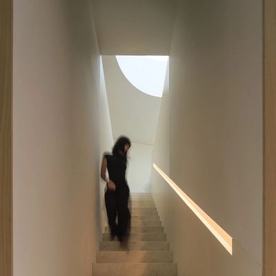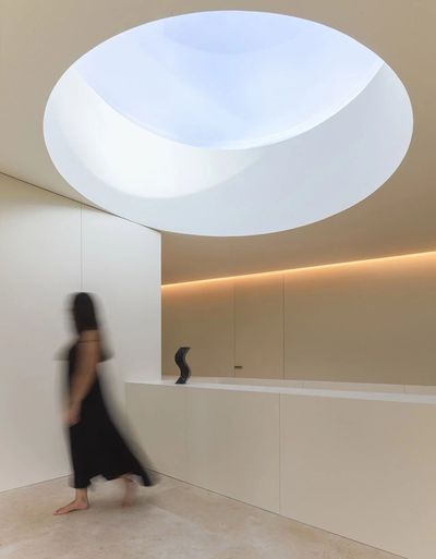 体量的旋转关系还体现在上层的圆形天窗中,该天窗由整体浇筑而成。在地下室则设置了车库以及健康与康养空间,并通过天窗引入自然采光,以符合当地的城市规划规定。