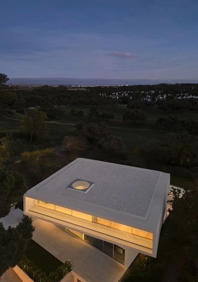 首先,是为了优化住宅各层的景观视野:底层包含日间活动空间,朝向花园布置;而上层则布置夜间休憩空间,面向仅在该高度才能望见的邻近湖泊。其次,是为了提供遮荫的室外空间,以抵御马德里强烈的日照。体量的旋转生成了带顶的露台。第三个原因或许更为主观,但同样重要:赋予住宅独特的身份。体量之间的倾斜关系在一日之中形成不断变化的三角形阴影,增添了空间的动态感。