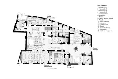 建筑的不完美之处尽可能保留原貌,现代改造则清晰精确。如此一来,酒店成为了一座可居住的、承载着层层历史记忆的档案馆。