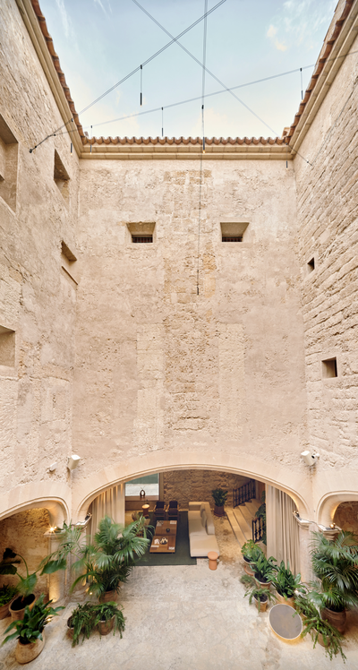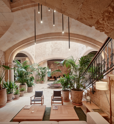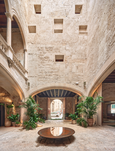 这座位于卡普奇内斯街(Calle Caputxines)的 2253 平方米石质建筑,拥有 12 世纪的阿拉伯式井格天花板、哥特式壁画以及宏伟的马略卡式楼梯。此前,将该建筑改造成酒店的尝试均未能获得帕尔马市议会的批准。然而,此次改造却颠覆了传统做法。建筑师们并未简单地将酒店功能植入历史建筑外壳,而是旨在让 Can Oliver 的原有风貌塑造诺比斯帕尔马酒店的设计。