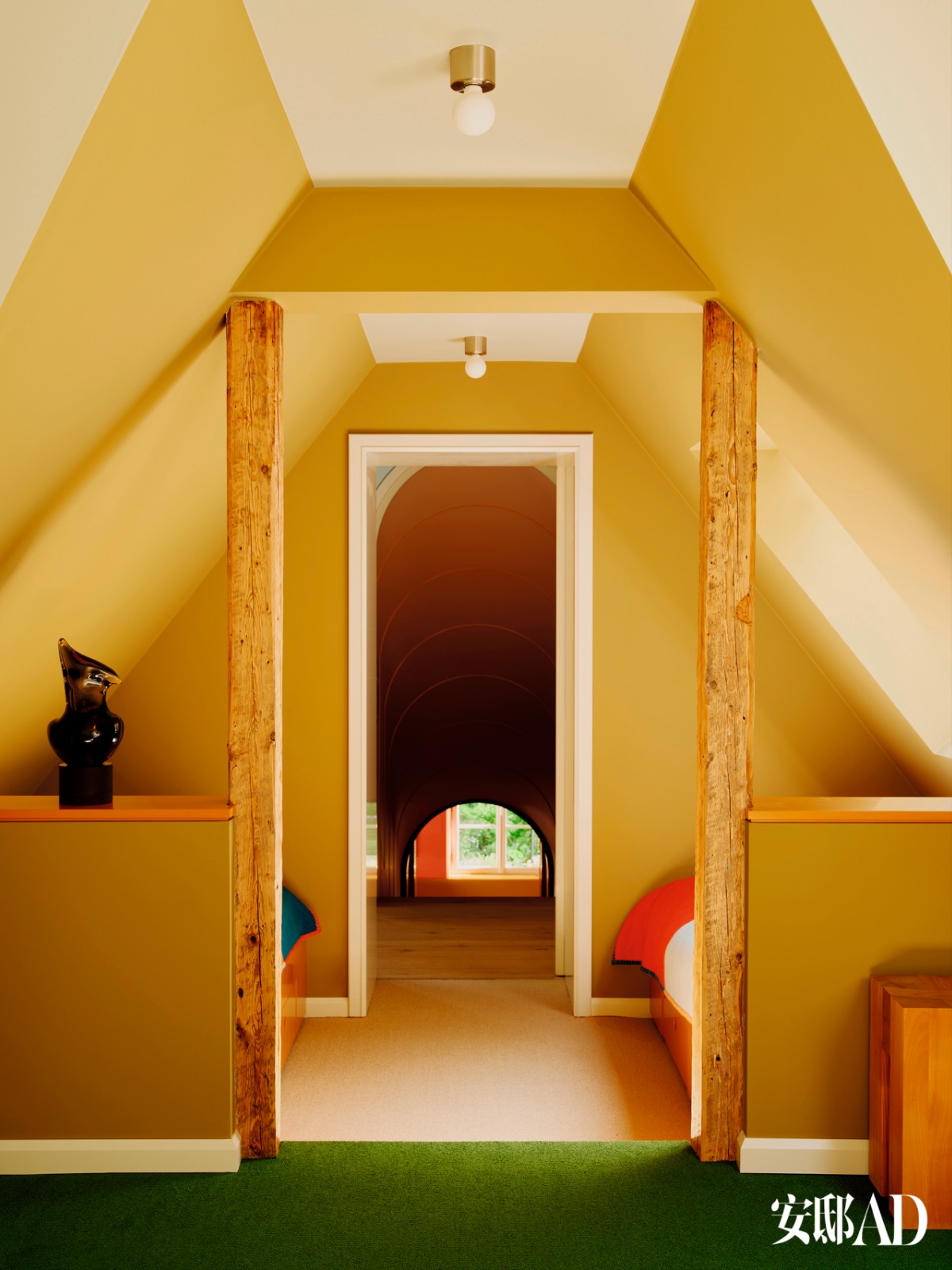软装以暖灰色为基调,缀以连贯的橙红色点睛,在沉静中跃动生机。这一抹亮色,恰如岭南琉璃彩窗与醒狮赤瞳的现代转译,于简洁空间中续写地域深情。