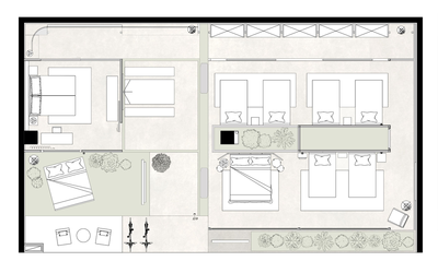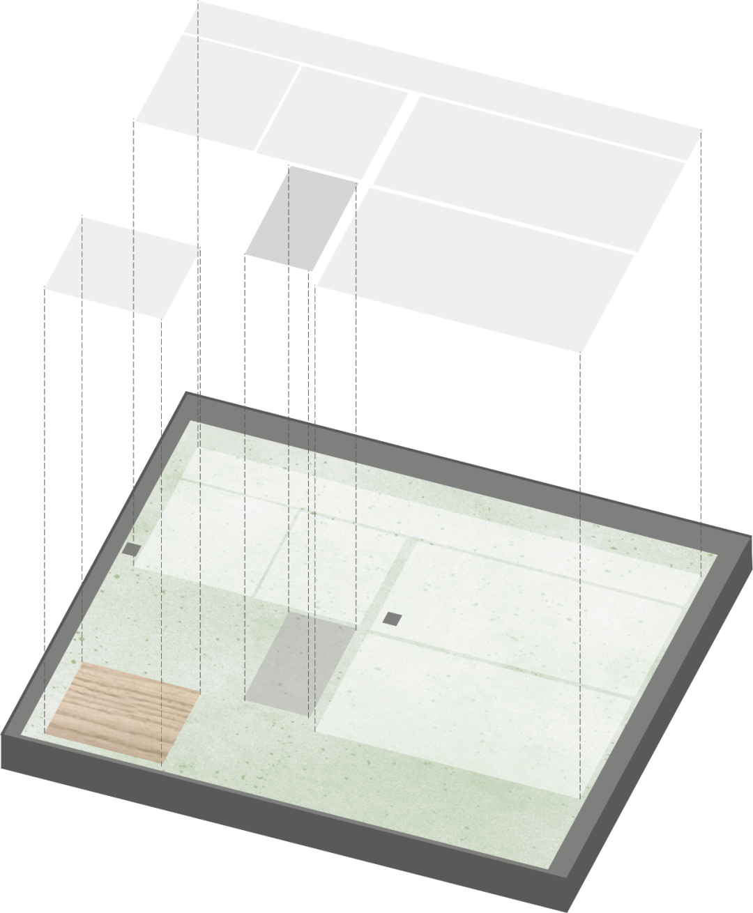 产品展示区/试睡区/周边产品区/深度睡眠区/沟通洽谈区/仓储区等区域根据使用功能的不同组合成整体的网格系统,而整个网格系统则放置于“自然场域”的整体平面中,践行“Sleep on Nature”这一品牌理念,这便是此次的设计出发点。