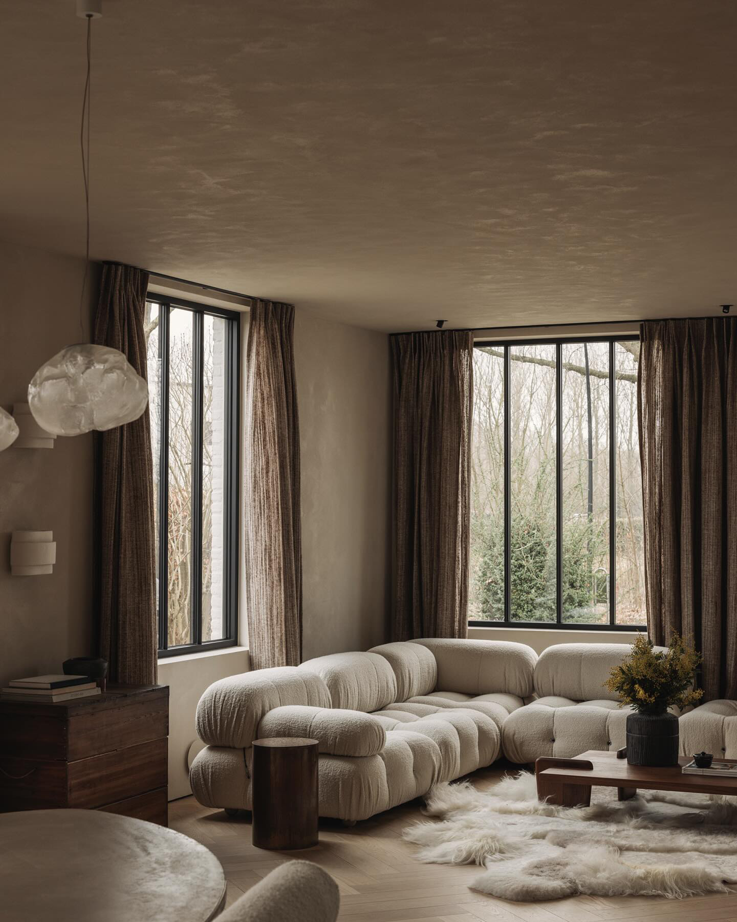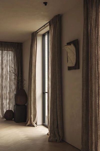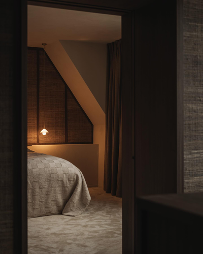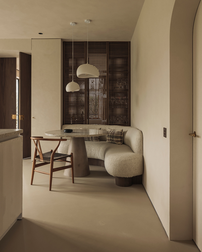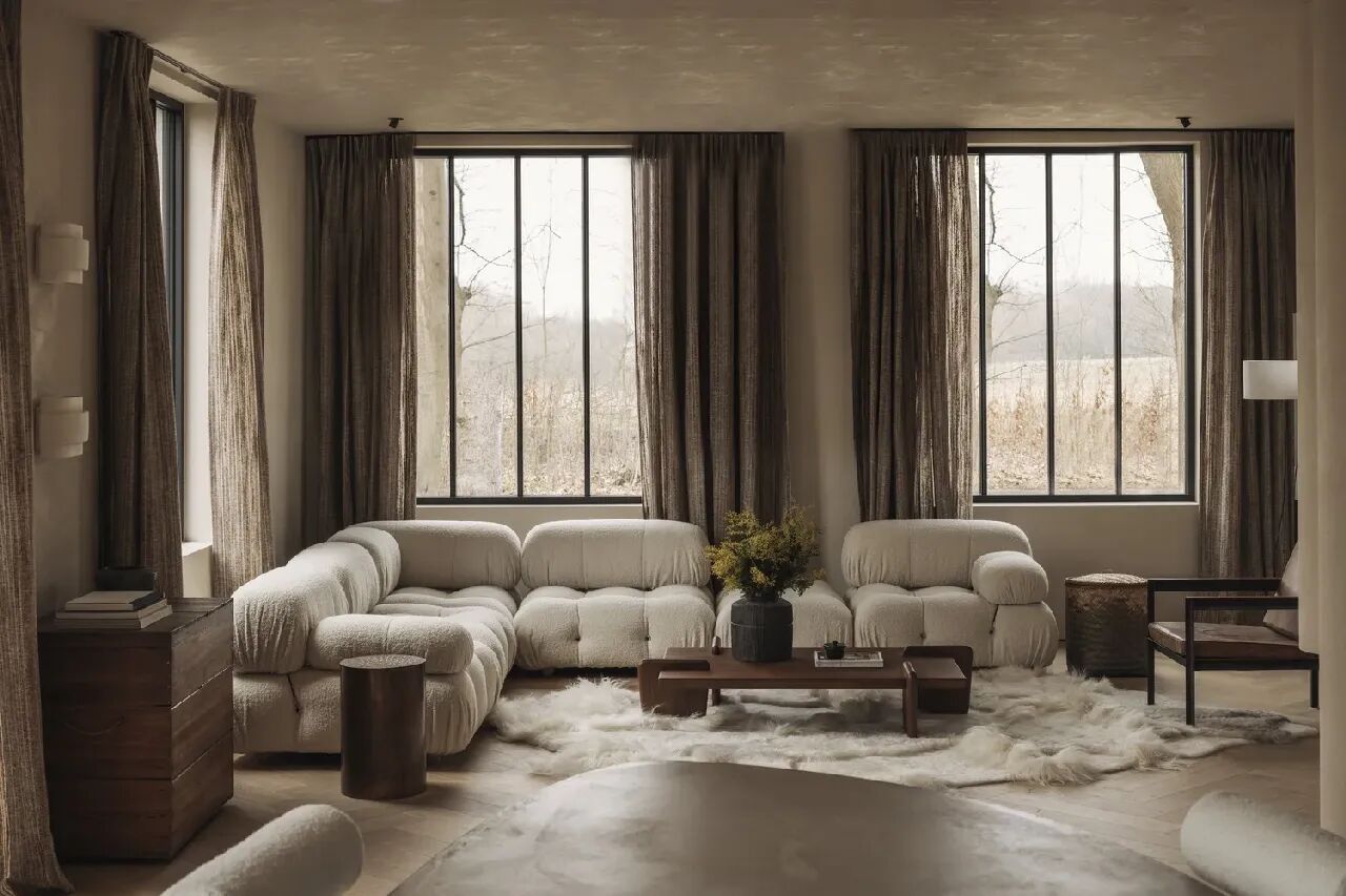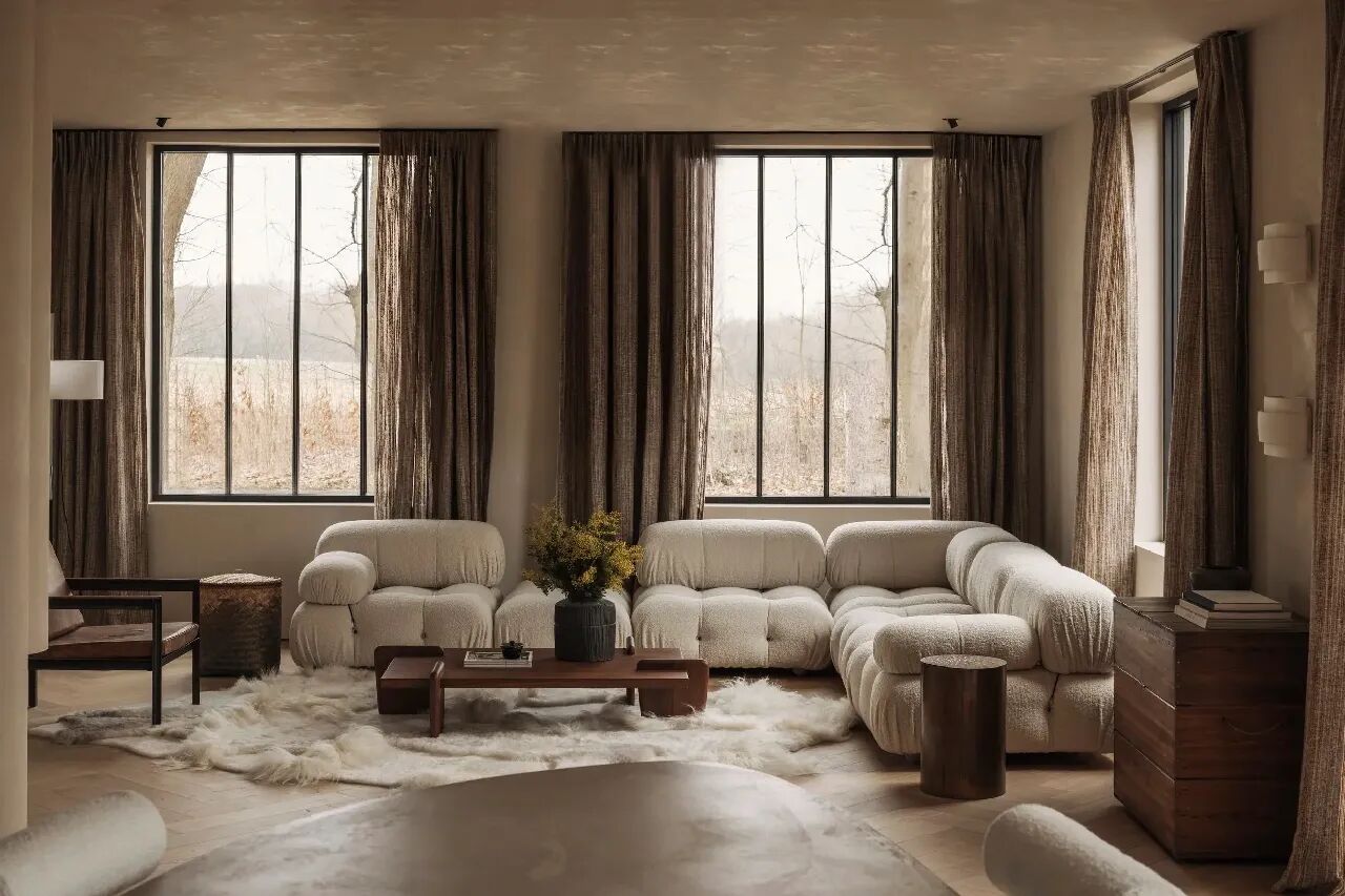 这栋位于阿尔斯特的住宅的室内空间通过材料、柔和的造型和色彩的运用,平衡了温暖与私密的氛围,房间采用暖米色和胡桃木色,打造一个深邃、丰富的空间,营造出和谐的对比效果。