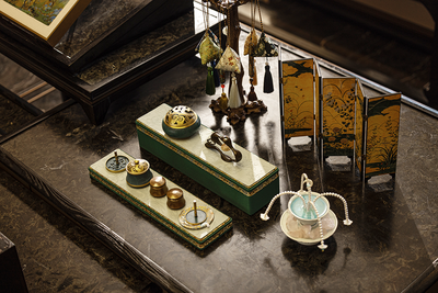 暖光拂过贝母漆的温润肌理,千里江山纹路随之流动,仿佛将浩荡光阴,凝练成一首静谧的青绿诗篇。