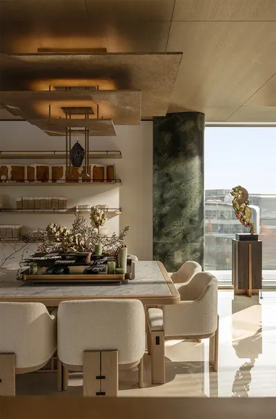杭州建发朗云营销中心,仿若一幅洇染而开的水墨画卷。设计以「四般闲事」为隐线,将宋人「素雅入骨」的美学气韵,细细编织进当代空间的肌理之中。余音流转,静默成境。