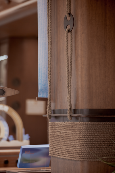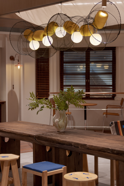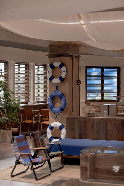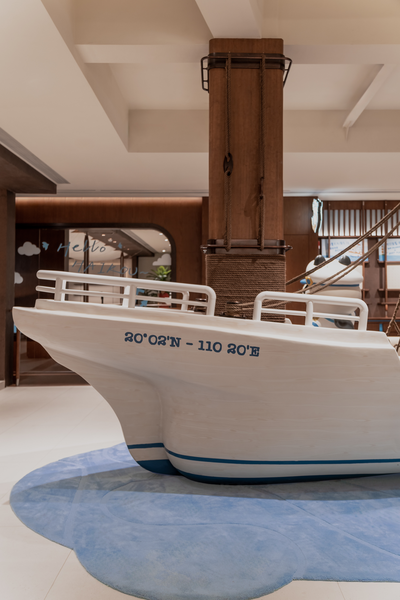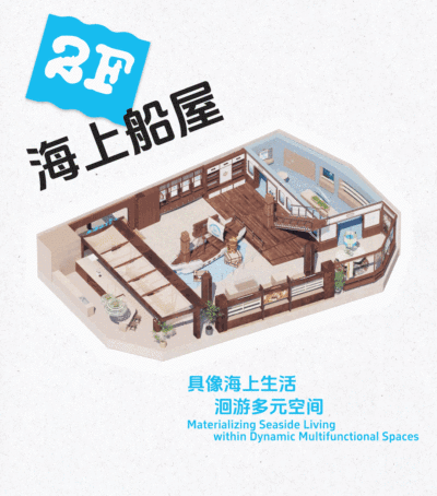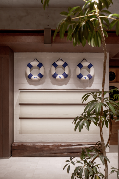 于是,客人可以通过船屋内部场景的还原,透过木质铺设、绳索、船锚、船门等一系列深化海上生活的元素演变,在其中松弛游逛,激发对各个空间的更多交互性。