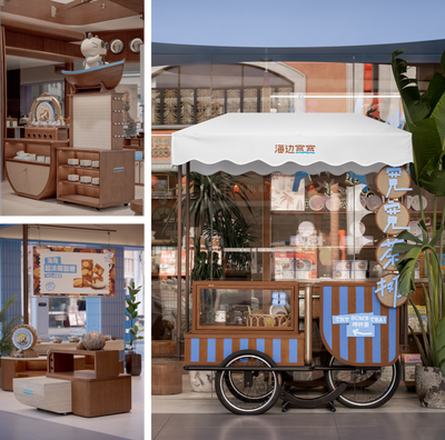 将海岛风情画卷具像化于建筑、室内、装置、产品视觉及设计细节等方面上,以全案设计策略扩大品牌影响力与社媒传播力,加深消费者对「海边宽宽」的品牌调性与整体认知。