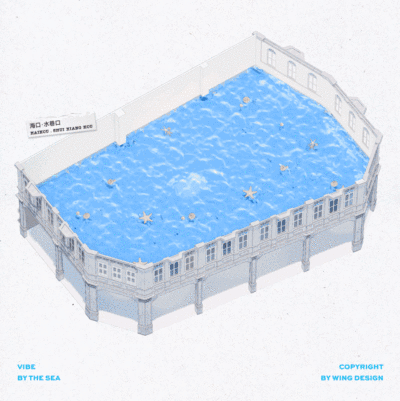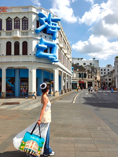 初抵场地,面向建筑两侧人流交汇的开放展示面,设置了大型气膜字「海口」吸引视线,蔚蓝而俏皮的形态拉近与消费者的距离,同时消解历史建筑的厚重感,现已成为骑楼新地标打卡点。