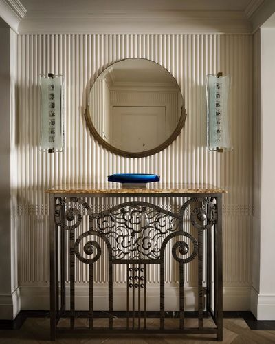 Farmer’s challenge lay in scale. Even with opulent decorative language, the design had to fit the apartment’s proportions. She struck a balance between complexity and simplicity—luxury without noise, vintage without heaviness.