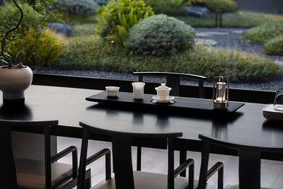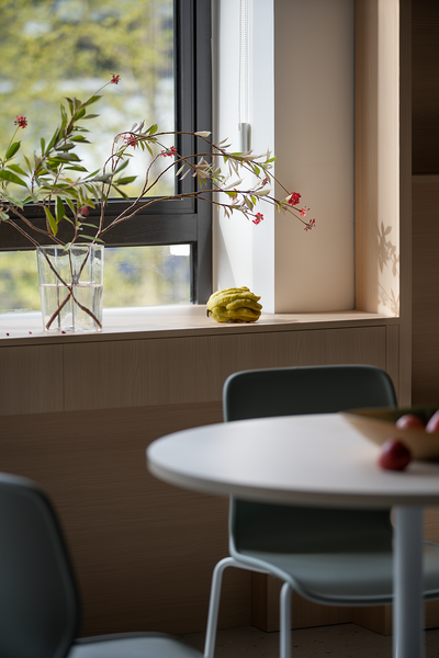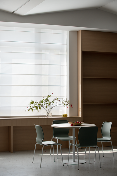 空间通过色彩对比和框景的处理让自然成为视线的主体,安静不受外界影响的空间,身处其中思考变得更加专注。