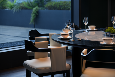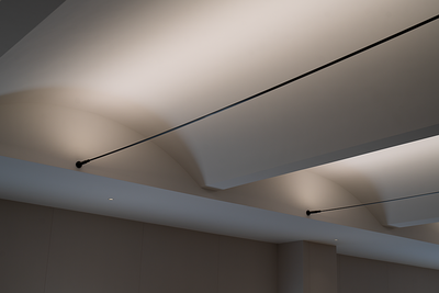 在高低尺度之间,利用纵向格栅线条与镜面顶做结合,视觉层面拉伸空间尺度,身在其中感受到通透、开放。