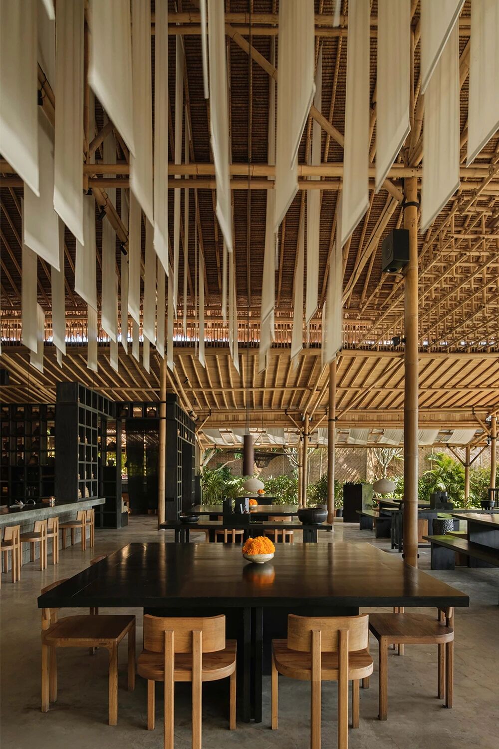 建筑以感官体验为线索,将巴厘岛的灵魂精髓与日本设计的极致简约相融合,呈现出一个既致敬传统、亦面向地平线的当代场域。建筑语言植根于本土智慧,核心设计以对巴厘传统集会亭阁 Wantilan 的当代诠释为起点。
