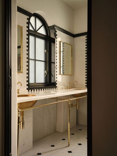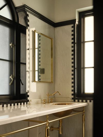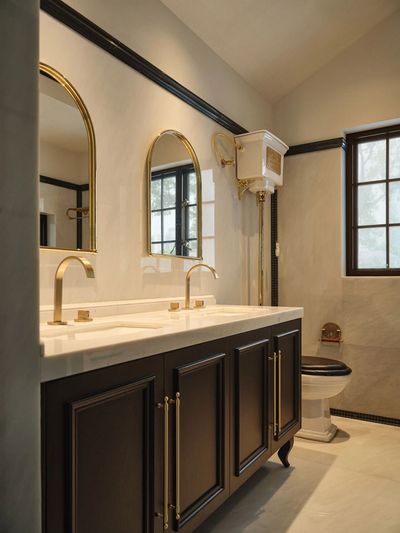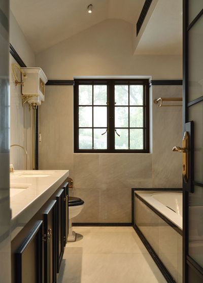 大理石与手工瓷砖拼接出如海岸线般的脉络。黄铜龙头滴落的水珠,像是地中海沿岸的晨露。镜前一盏锻铁壁灯,照亮每一个清晨与夜晚的仪式。