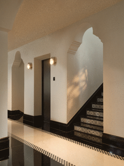 阳光透过拱廊,在墙面上投下温柔的光影。陶土花砖沿着时光的纹路蔓延,铁艺吊灯轻声吟唱着来自地中海的歌谣。这是一场穿越时空的对话——西班牙的热情与上海的老洋房,在此相遇、相融、相生。