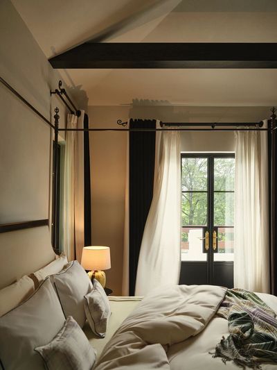 天花保留了原始结构的木梁,未加修饰的质朴质感与精细的墙面形成诗意对话。