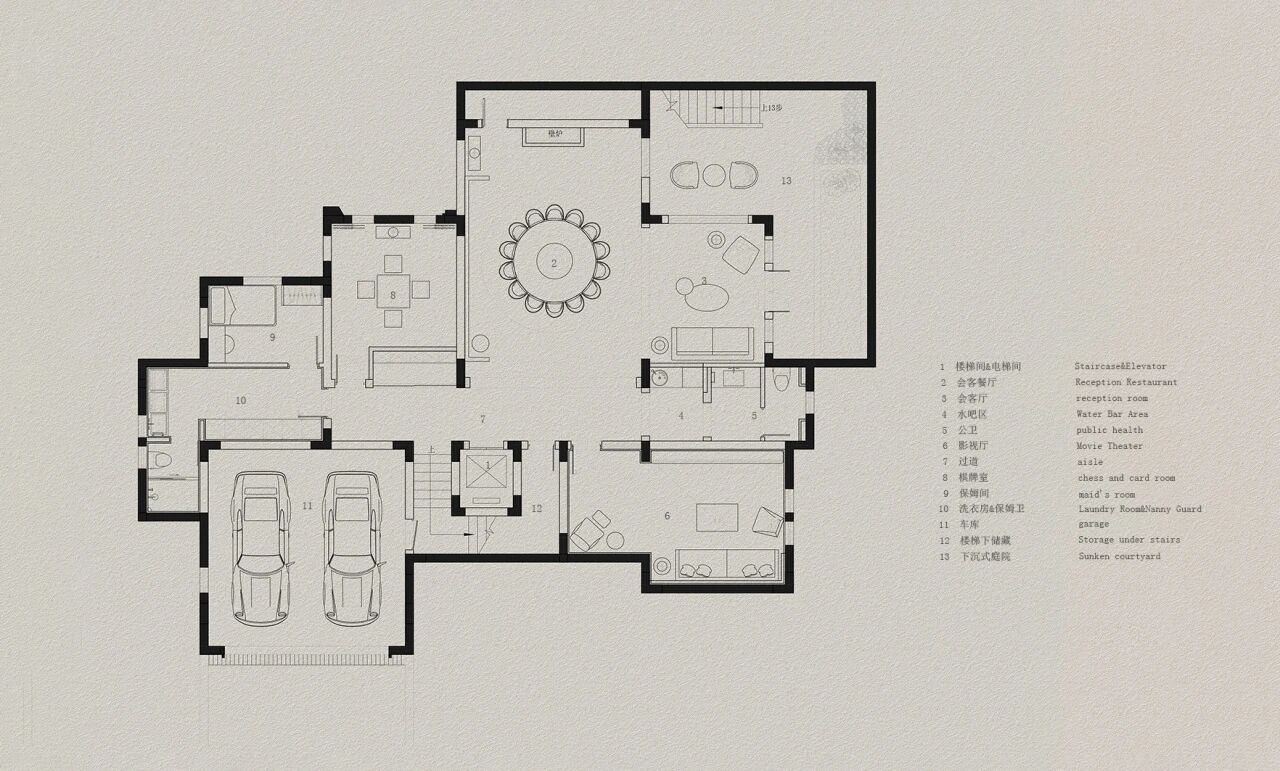 整个地下室空间通过材质、色彩与光线的精心调配,既保持了西班牙风格的热情与质朴,又通过细腻的软装搭配注入了海派文化的优雅与精致,打造出一个远离喧嚣、专属于家人朋友相聚的温馨场所。