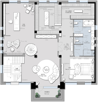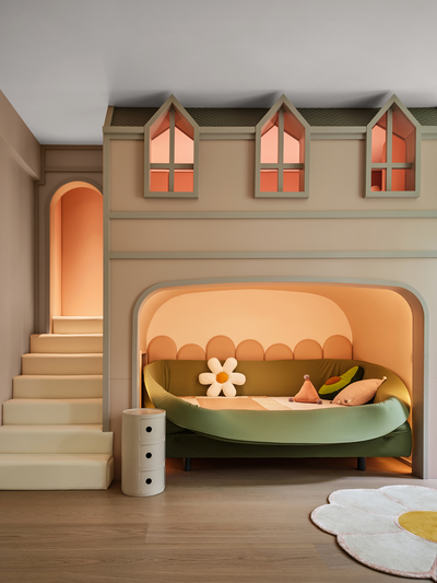 ,流畅的弧形线条赋予顶层一种艺术化的轻盈与俏皮感,仿佛寓意着家庭故事正在此处被温柔书写。