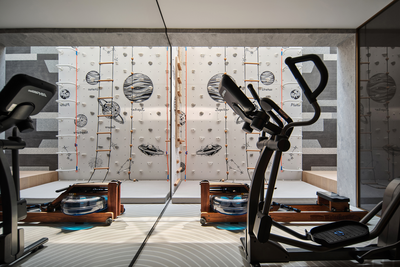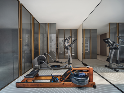 健身房设计遵循着通而不透,隔而不断的理念,既有私密性,又能够与公共空间共享阳光和美景。