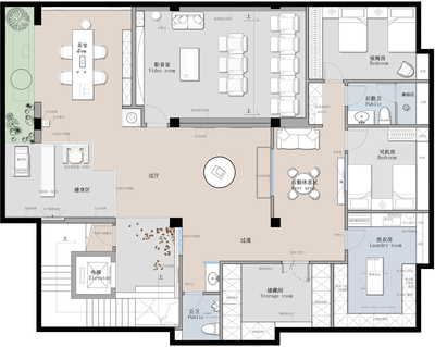 后勤空间,拥有独立完整的公共活动区域,简约有序。水平横窗的打造,带来光线一天之内的不同变化。整体洗衣房为生活提供有力的洗护便利,多重系统与细节收纳一应俱全。