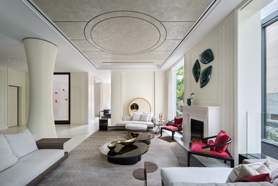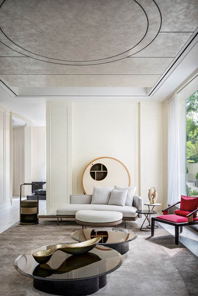 吊顶中流畅的环形线条,不仅以柔和的弧线弱化了空间的方正感,更延续了中国传统中