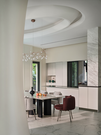 客餐厅采用开放式格局,彼此间形成延伸又各自独立,光与空气自由流动,给人无限的松弛感。