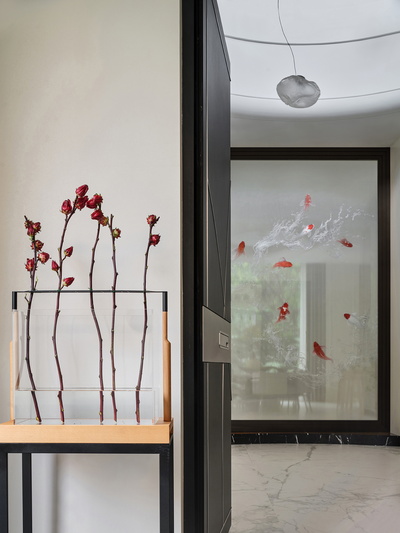 在业主入住两年之际,我们如约对这所东西方交融的住宅进行了回访,以了解其真实的居住体验。女主人热情地接待了我们,她身上兼具干练大气与温雅谦和的气质。她与先生都深爱中国传统文化,同时拥有国际化的审美视野,乐于探索全球家具品牌,也会为一件心仪的艺术品不辞奔波。