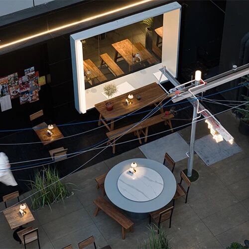 Surrounding this core volume, the interwoven space unfolds into a long corridor. It is not merely a streamlined transition; through its slanted layout, the flow is elongated as much as possible within the space, forming a variable stage: it is both a runway and a backdrop for self-media broadcasting. In this sense, wholesale and retail spaces are no longer just containers for display and consumption but have been transformed into an open performance venue.