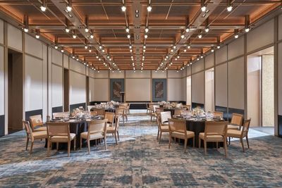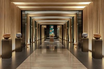 以在地为文本,艺术复刻时间的脉络。设计师捕捉渔民出海的场景,将富国岛独有的白色沙滩,碧蓝波光,律动撒网及温柔海浪邀入画框,以具仪式感的艺术叙事秩序,呈现大堂低调华丽,却满满的隆重接待空间体验。同时