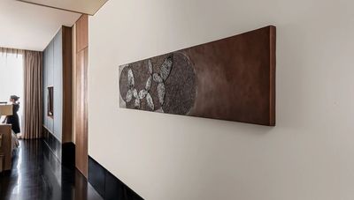 被纳入客房主要艺术创作启发,设计师选取当地的黑胡椒,经风干防腐处理,加入金箔蜡封,创作出一幅“琥珀胡椒”的装置艺术,向入住者讲述着富国岛原汁原味的特产胡椒与当代艺术结合的魅力。