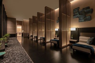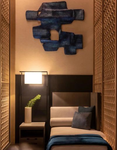 ,经手工雕刻纹理也氤氲出时间的沉香。现代东方雅情的装置艺术,为SPA的氛围呈现松弛。