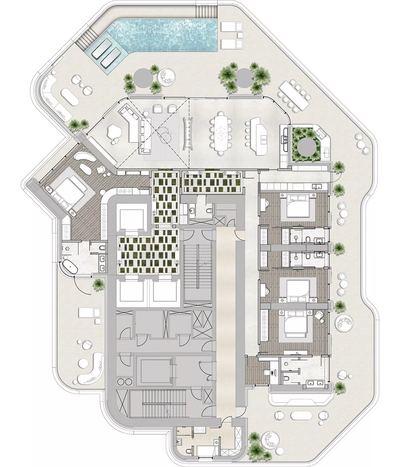 最具创新性的设计亮点是顶层的游泳池,它将横跨两座摩天大楼之间,成为连接两座塔楼的核心特色。