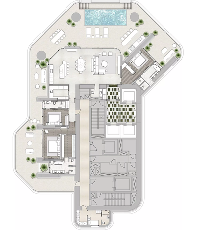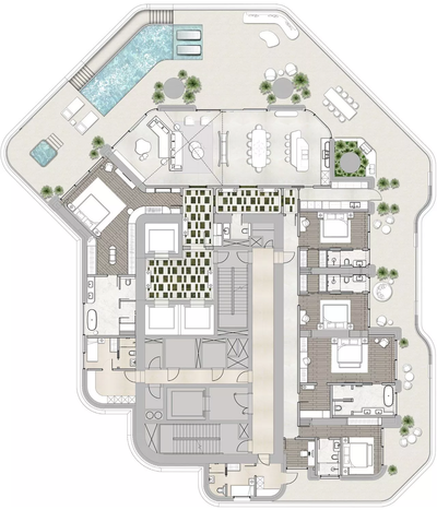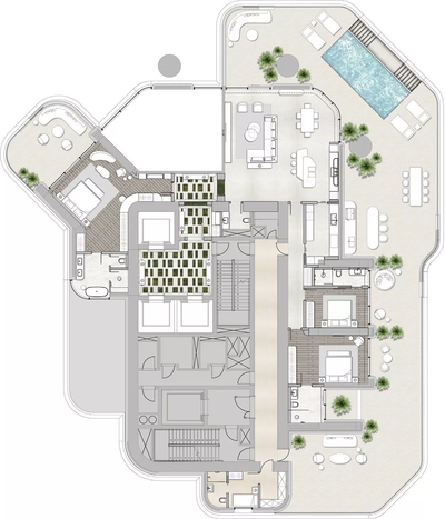 每套全层住宅都配有私人泳池和宽敞的户外生活空间,旨在提供类似豪华度假村的生活体验。