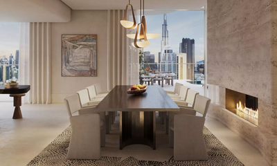 精选的家具、艺术品和定制灯具,结合精致的木材和石材装饰,打造出现代而温馨的居住体验。